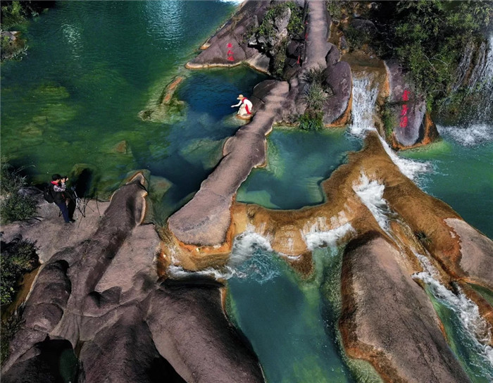 湖北京山鴛鴦溪發源于大洪山南麓的白龍池,素有“九曲鴛鴦溪、十里水畫廊”的美稱,景區內峽險谷幽,水碧林翠,鳥語花香,溪水在九曲峽谷中蜿蜒,兩岸高山峻谷奇異俊美,懸巖怪石玲瓏,溢彩滴綠的天然樹林,古香古色的亭臺樓閣,遒勁有力的摩崖石刻,令人流連忘返。