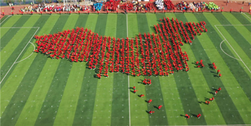 11月14日上午,武昌理工學院第十六屆秋季運動會開幕式上,千人大型團體操表演驚艷全場。近千名大學生用隊列變化拼出五星紅旗、中國地圖、中國夢等圖案或字樣,向祖國70周年獻禮。
