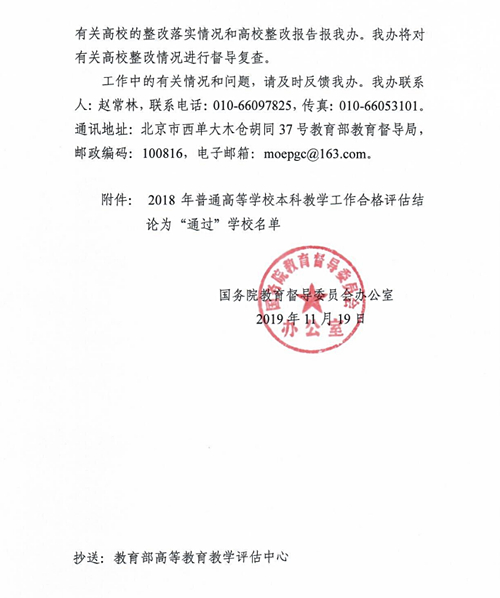 近日,國務院教育督導委員會辦公室正式發布了《關于公布2018年普通高等學校本科教學工作合格評估結果的通知》(國教督辦函〔2019〕50號),武昌理工學院順利通過教育部本科教學工作合格評估,這是武昌理工學院發展史上具有里程碑意義的重大事件,標志著學校發展邁向了新臺階、開啟了新征程、進入了新時代。