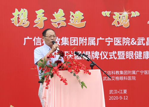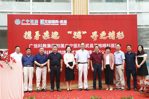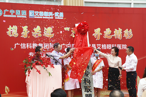 9月12日,武漢廣寧醫院與武昌艾格眼科醫院眼科?坡撁私遗苾x式隆重舉行。廣信科教集團董事局副主席、副總裁呂驊燕,常務副總裁張堂軍,黨委書記、工會主席許益,監事會主席趙作主,艾格眼科集團董事長葉榮華,醫療總院長金中秋,醫療副總院長蔡小軍,艾格眼科武昌醫院院長王先君等領導嘉賓出席揭牌儀式。