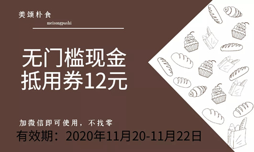 美頌樸食無門檻現金抵用券12元,進店添加微信即可領取!