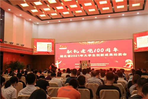 武昌理工學院黨委書記汪繼平介紹,為迎接中國共產黨成立100周年,充分發揮黨建引領創新創業作用,激發廣大青年學子的創新創業活力,在科技廳、教育廳指導下,特舉辦慶祝建黨100周年暨“黨建引領創新、激發青年活力”的大學生創新成果拍賣會。希望通過此次拍賣會,為建黨100周年獻禮,積極響應黨中央提出的“大眾創業,萬眾創新”的號召,弘揚大學生創新精神,展示湖北高校大學生創新成果,加強對湖北大學生創新成果的宣傳推介,幫助高質量的大學生創新成果進行轉化。