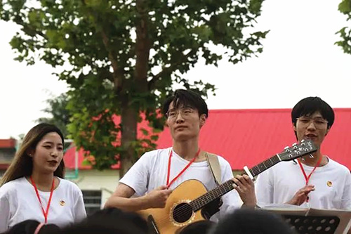 授牌活動現場,武昌理工學院社會實踐團隊還為孩子們帶來了精彩的演出。在匯演的舞臺上,飄揚的音樂,融入了隊員們的才情,用節奏伴隨音樂,用聲音帶來歡樂,在藝術的氛圍里,不斷地去探索,以文化強國為己任,繼往開來,再創輝煌。