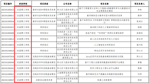武昌理工學院此次獲批的14個項目,涉及 “教學內容和課程體系改革”“師資培訓”“實踐條件和實踐基地建設”“創新創業教育改革”4個項目類別,獲得了科大訊飛、軟帝信息、貝殼找房、博思信息等知名企業的支持。獲批的項目包括《應用型本科院校通信工程專業《移動通信》課程體系改革 》《基于工程教育認證和人工智能+的數據科學與大數據技術專業課程體系建設》《數字媒體設計教學內容與課程體系改革》《基于結果導向《市場調研與預測》課程的混合式教學設計》《面向新工科的人工智能師資培訓》《房地產經紀 “雙師型”師資隊伍建設探析》《嵌入式與系統軟件開發人才培訓》《人工智能技術師資培訓》《移動應用開發師資培訓》《Java應用開發實踐基地建設的探索與實踐》《基于工程認證教育的數據結構課程平臺建設》《軟件工程專業工程認證平臺建設》《數字媒體藝術產教融合實踐教學基地建設》《機器人創客教育》等。