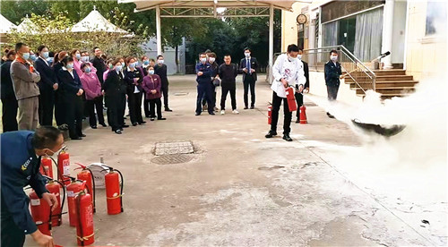 為確保應急預案的可操作性,切實有效提高酒店職工的消防安全技能,此次演練的重點項目是滅火器使用和滅火操作及消防水帶放接使用。演練分小組進行,在滅火演練中,由指定人員將準備好的易燃物點燃,每位員工手持滅火器,以最快的時間將火滅掉,演練初期一些員工明顯對燃燒的大火感到緊張,動作也略顯生疏,隨著演練的深入,大家都逐漸適應,有條不紊地投入到滅火演練中。整個演練過程歷時一個多小時,并有專人在現場進行考核。