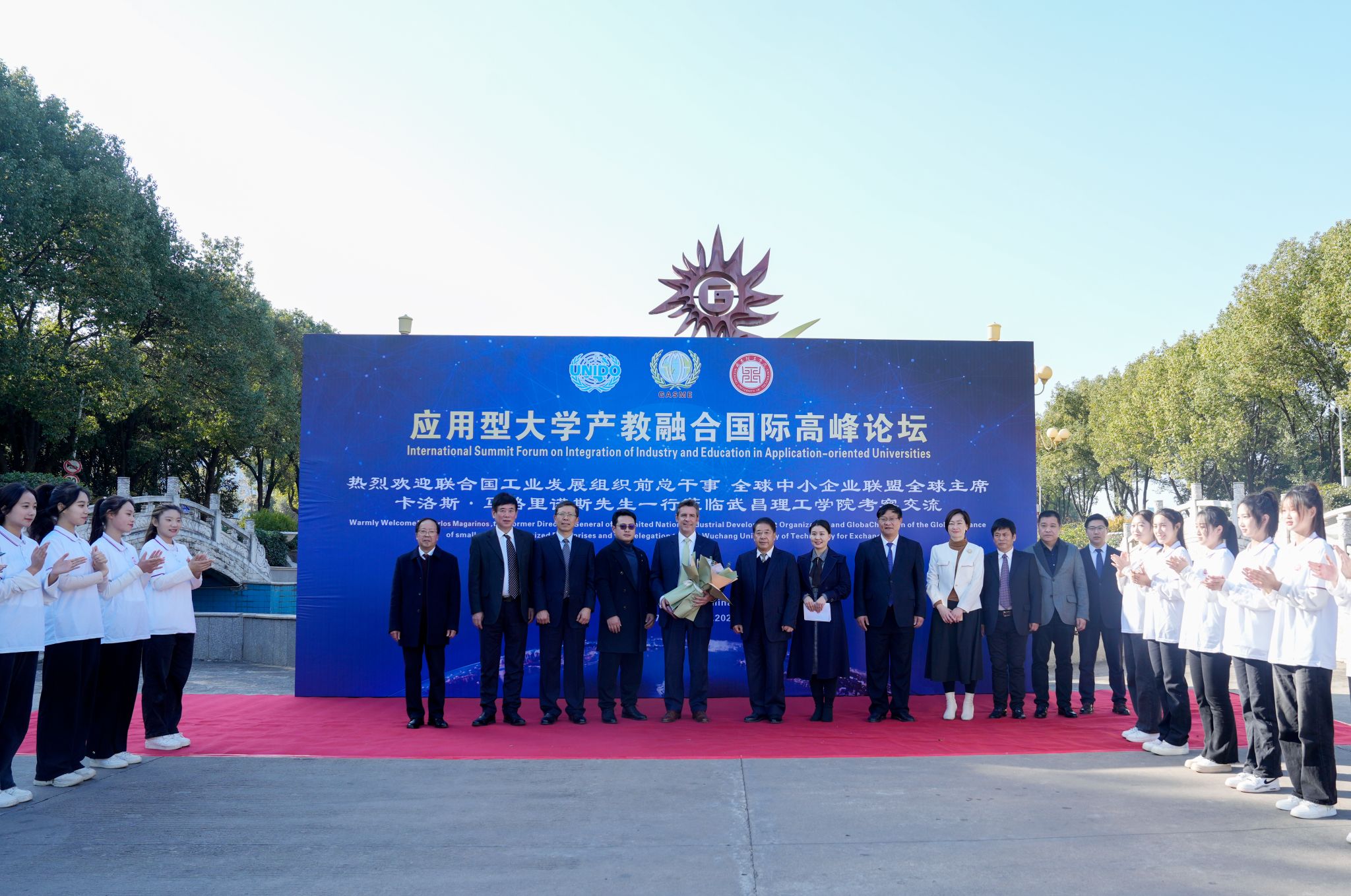 12月7日下午,聯合國工業發展組織前總干事、全球中小企業聯盟全球主席卡洛斯·馬格里諾斯先生一行來到武昌理工學院考察交流,并出席了“應用型大學產教融合國際高峰論壇”。眾企聯領袖俱樂部秘書長馬紹博、全球中小企業聯盟執行秘書長張雪、科大訊飛公司代表陳新生、騰訊公司代表熊軍、武漢文理學院副校長顏海、眾企聯領袖俱樂部執行秘書長朱成寬以及廣信科教集團、武昌理工學院領導等參加論壇。
