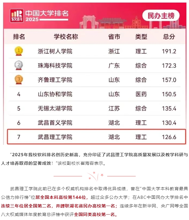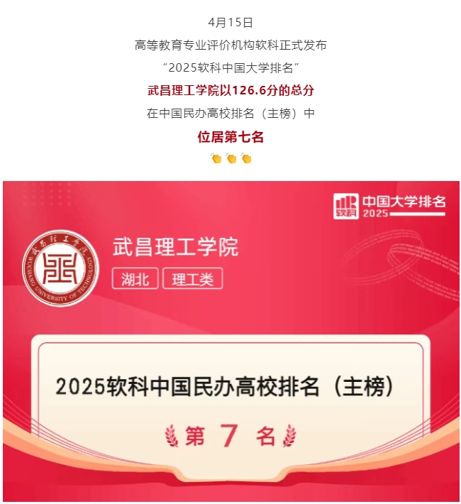 頭條|最新排名出爐!武昌理工學院榮登全國第七!