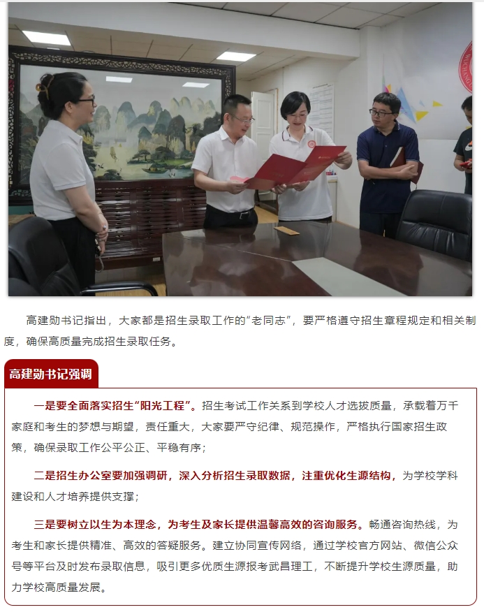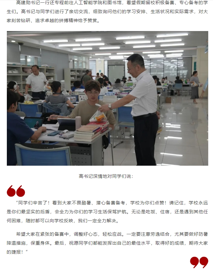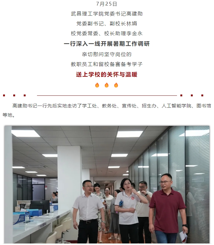 頭條|武昌理工學院黨委書記高建勛帶隊走訪慰問暑期在崗教職工和留校學生